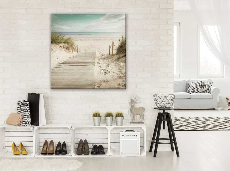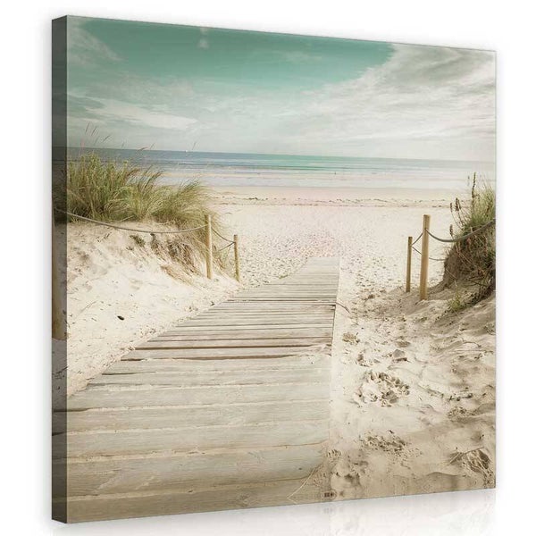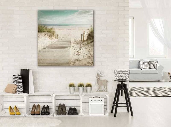 Haal de betoverende schoonheid van de natuur bij u in huis met ons strand schilderij. Het schilderij toont een strandpad, door de duinen, richting het strand en de zee.