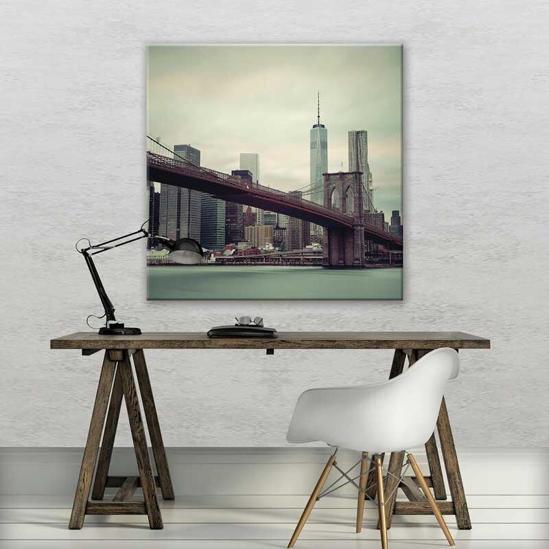Ervaar de majestueuze grandeur van de bekendste brug van New York met ons meesterlijke canvas schilderij van de Brooklyn Bridge. Dit kunstwerk brengt de iconische brug tot leven, met zijn imposante architectuur en indrukwekkende skyline van New York op de achtergrond.