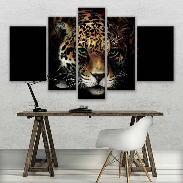 Breng de mysterieuze kracht van de panter in uw interieur met ons adembenemende 5-luik luipaard schilderij. Dit meesterwerk vangt de ontembare allure van de panter, waarbij elke afzonderlijke paneel de schoonheid en de intensiteit van dit majestueuze dier weergeeft tegen een diepzwarte achtergrond.