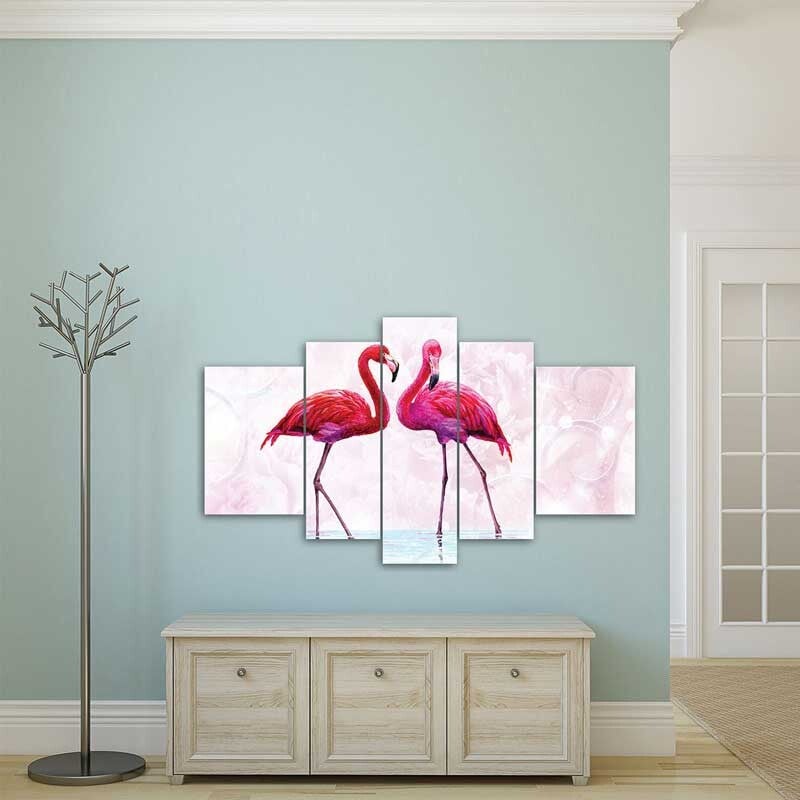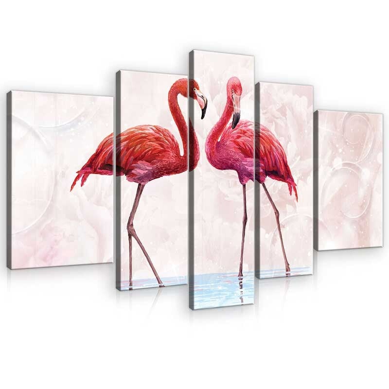 5-Luik Schilderij Flamingo's - 170 x 100 cm